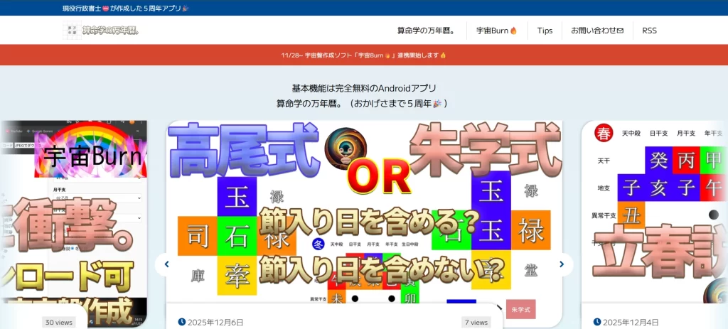 算命学専門の万年暦アプリ